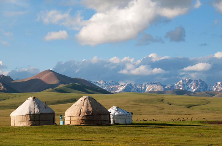das alpine Plateau Song-Kul mit traditionellen Jurtenlagern