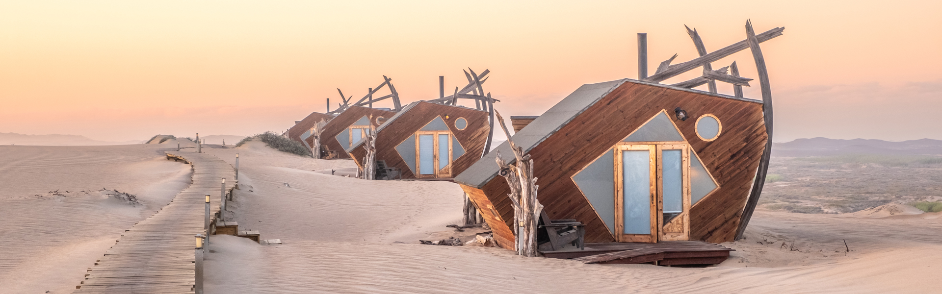 Mitten in den endlosen Dünen der Skeleton Coast liegt ein Ort, der so surreal wie spektakulär ist: die Shipwreck Lodge. Inspiriert von den legendären Schiffswracks der Region, verschmilzt das architektonisch einzigartige Design der Lodge perfekt mit der rauen Schönheit der namibischen Küste.